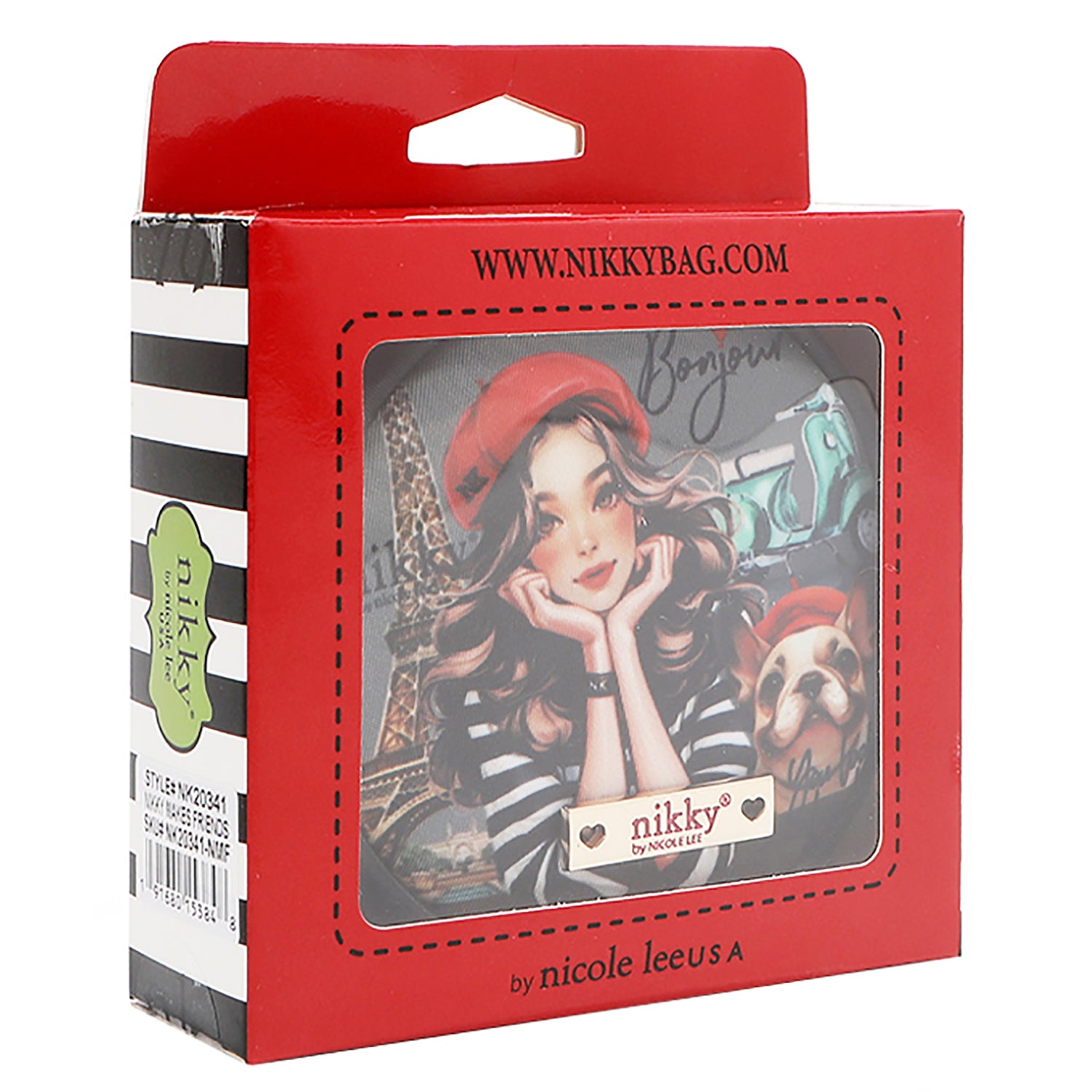 - Features a Nikky gold-toned logo nameplate on the front.