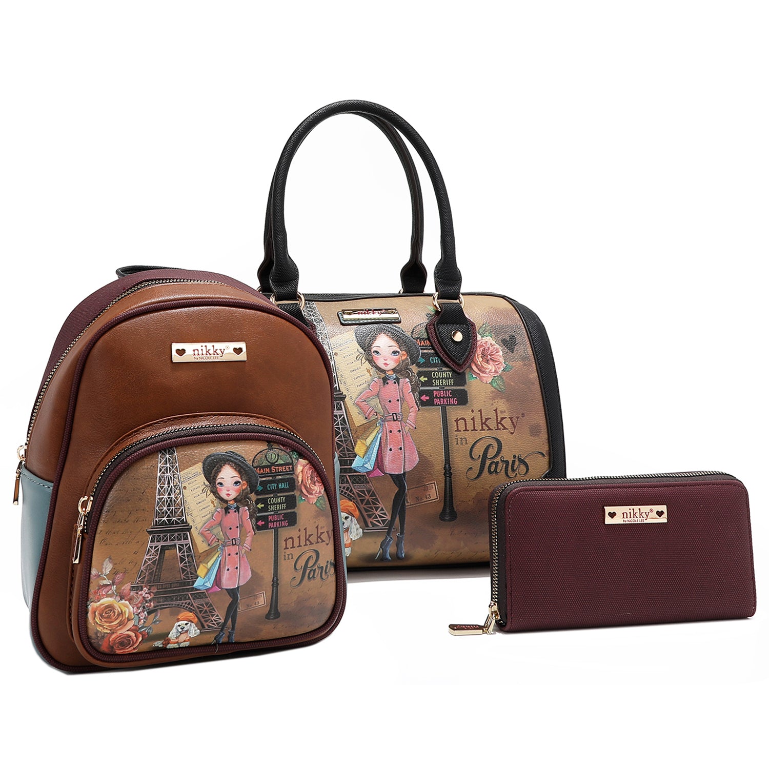 EMILY GOES PARIS 3 PIECE SET (BOSTON, MINI BACKPACK, WALLET)