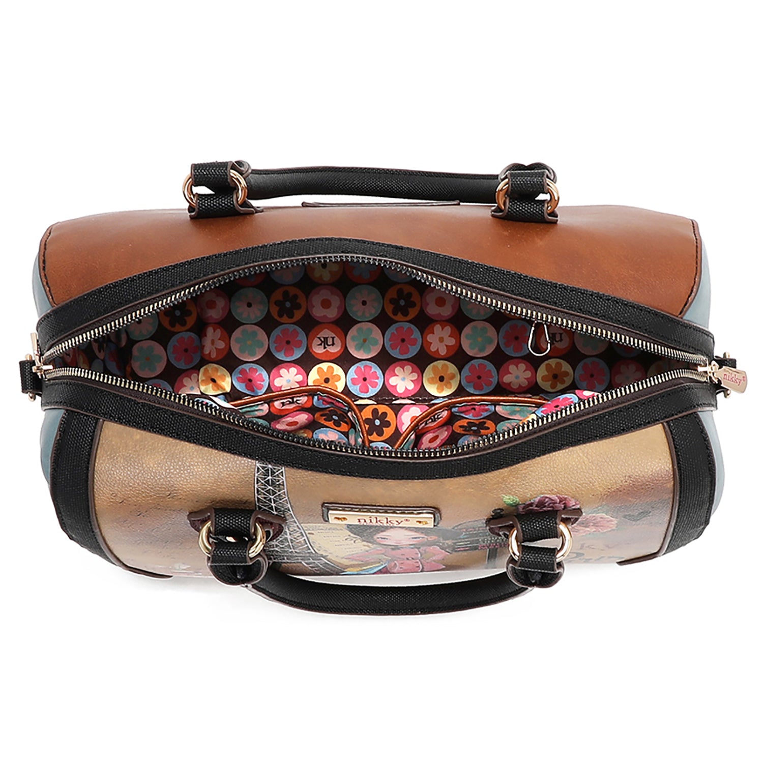 • Lined with signature Nikky print polyester fabric.