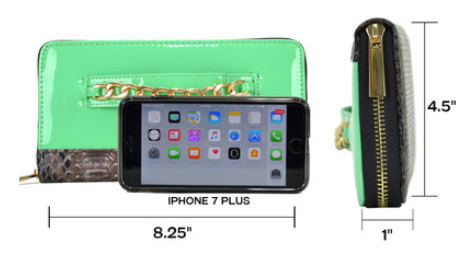 This faux leather + Snake Skin wallet is perfect for the busy girl on-the-go! Inside, it features a few long pockets, 12 credit card slots and a zippered coin pocket which means you have plenty of room to store everything you need. As if that wasn't enough, it is secured polished gold tone zip-around closure.