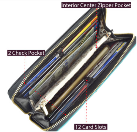• Zippered Center Divider Coin Compartment