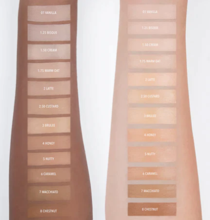 With a shade of up to two times lighter than your skin tone, apply under eyes, bridge of nose, middle of forehead, and cheeks to even out and highlight your face.