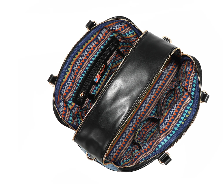 Where art meets utility the "Bosque de Amor" Denim Satchel Bag is your stylish tribute to the hummingbird, messenger of love and time.